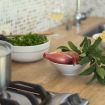 La casa è a misura d’uomo: 80 mq, sinuosa come un movimento di danza o come le onde del mare. Ti accoglie con uno spazio all’aperto raccolto, davanti al portone, ideale per un caffè o una pausa lettura. Appena entri, vieni accolto un living open space luminoso e davvero speciale, caratterizzato dalle volte a botte che lo rendono unico. All’interno, divano (anche letto), Tv, tavolo da pranzo e la lunga cucina bianca disposta su un lato. La cucina è moderna e attrezzata con fuochi a gas, forno, lavastoviglie, microonde, frigo e tanti cassettoni capienti, oltre alla macchina Nespresso per il caffè. Dal living, una porta finestra ti conduce verso il giardino e l’area pranzo esterna.
