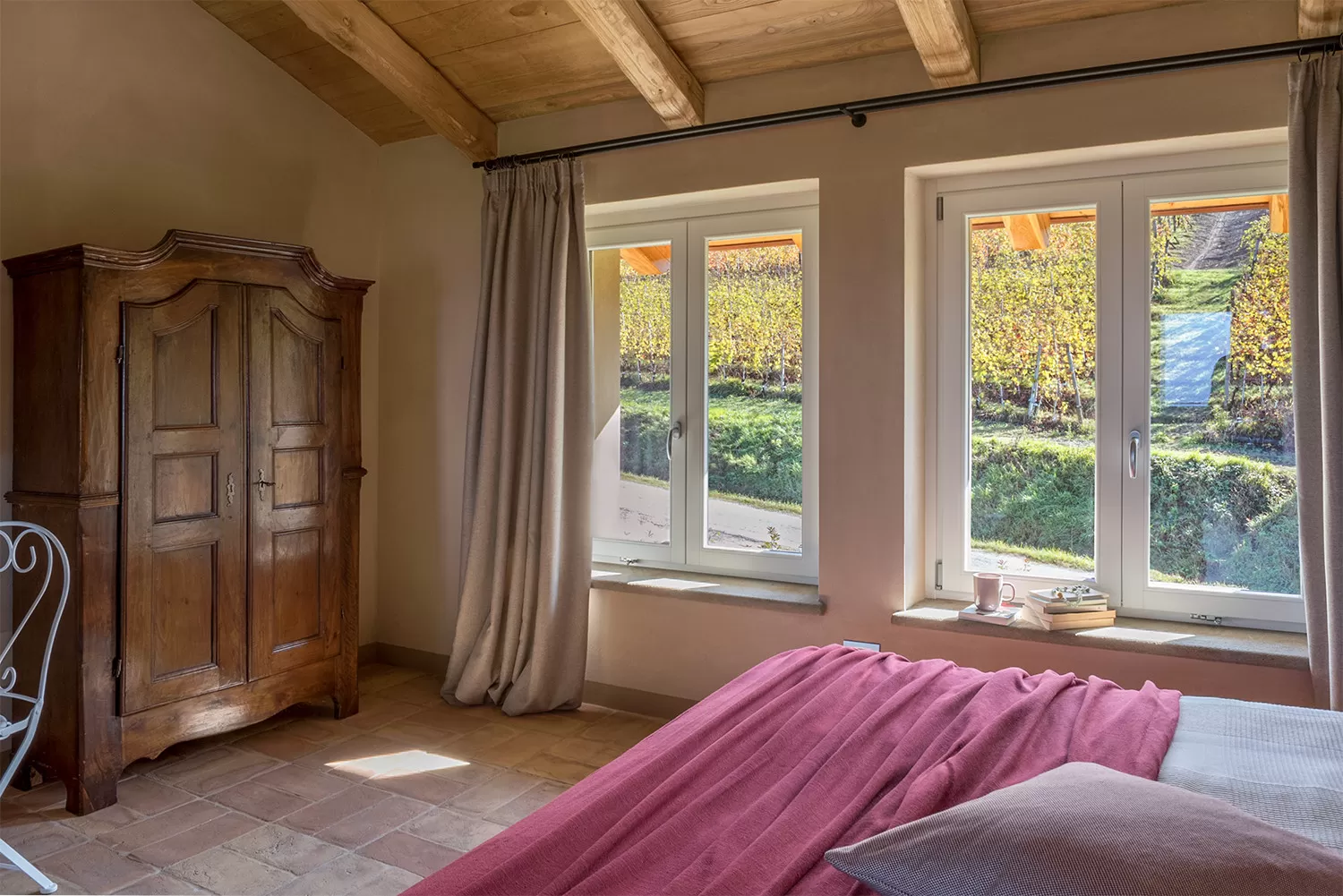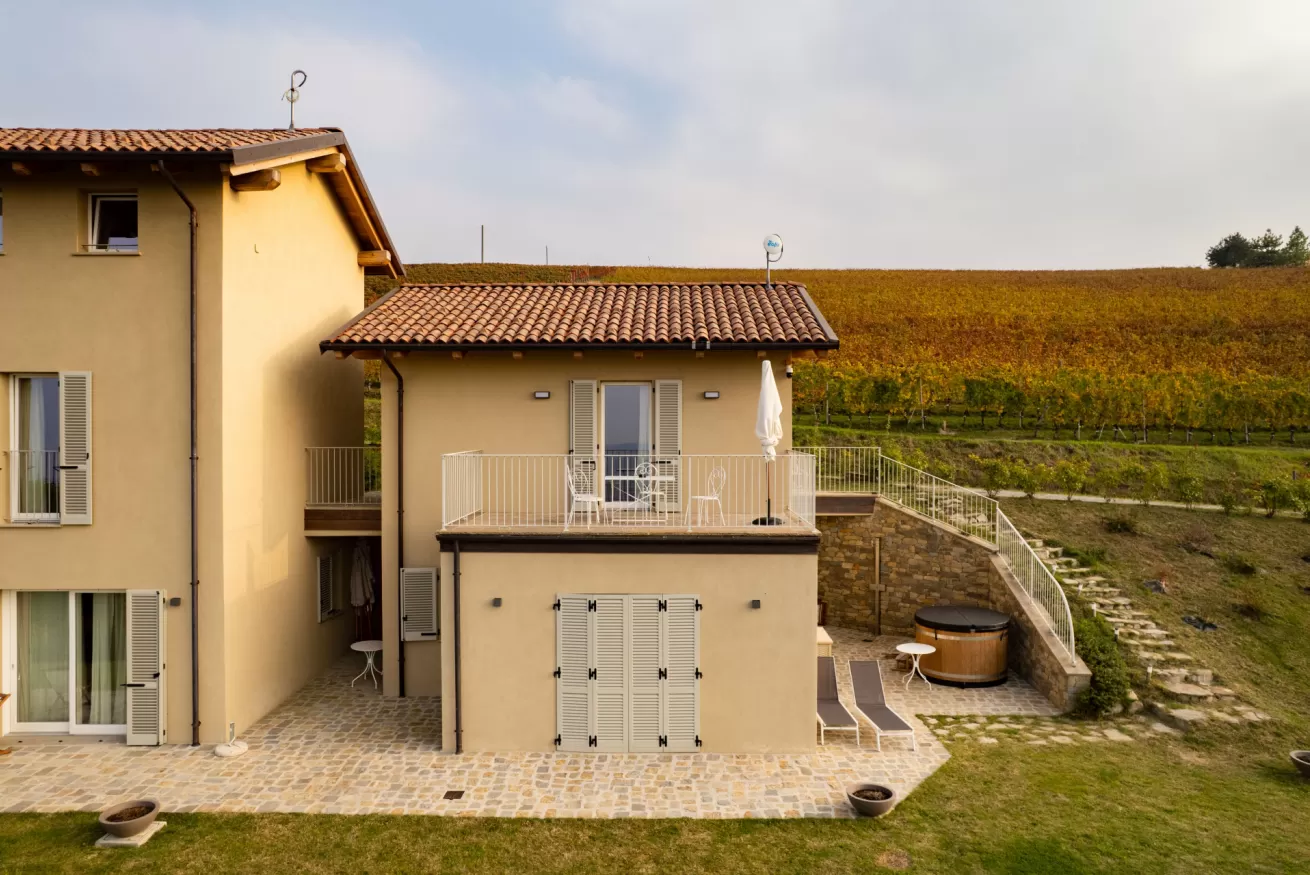 Quella del paesaggio incantevole davanti ai tuoi occhi, che si perderanno tra lunghi filari - verdeggianti in estate e rossi fuoco in autunno. Quella degli interni dei nostri Ciabot ristrutturati con un animo rustico ma chic, con un mix di mobili d'epoca e altri moderni.