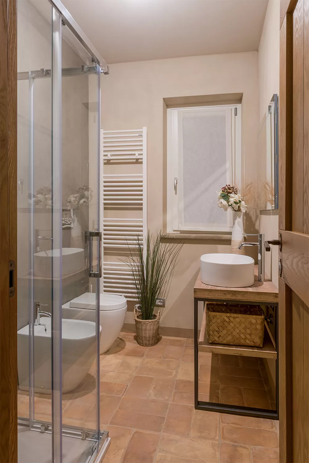 Due bagni ristrutturati in stile rustico